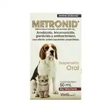 Metronid - Antiparasitario para Perros y Gatos es un potente tratamiento antiparasitario diseñado para combatir una amplia variedad de infecciones causadas por protozoos y bacterias anaerobias en mascotas. Su fórmula avanzada, basada en Metronidazol benzoilo micronizado (250 mg/mL), garantiza una acción eficaz contra giardias, amebas, trichomonas, entre otros parásitos, además de ofrecer efectos antibacterianos que previenen infecciones en tejidos y mucosas. Este antiparasitario es ideal para el tratamiento de infecciones como abscesos abdominales, peritonitis, infecciones genitales, periodontitis, y otitis media en perros y gatos.