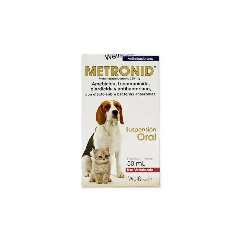 Metronid está indicado en perros y gatos para el tratamiento de infecciones causadas por protozoarios y bacterias anaerobias. También, está indicado en abscesos abdominales, peritonitis, infecciones genitales, periodontitis, otitis media, osteítis, artritis, meningitis, en tejidos necróticos, amebiasis intestinal, hepática, absceso amebiano, uretritis por tricomonas, gastritis y duodenitis.