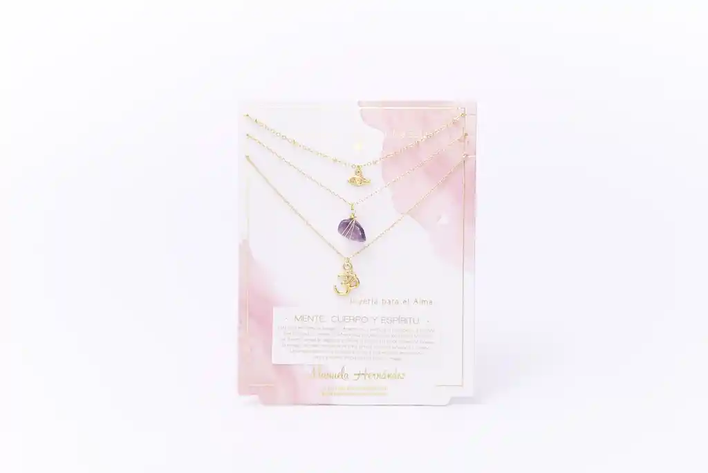 Cadena y apliques Dorados con Baño de Oro 18k. Elaborado con Amatista Natural.