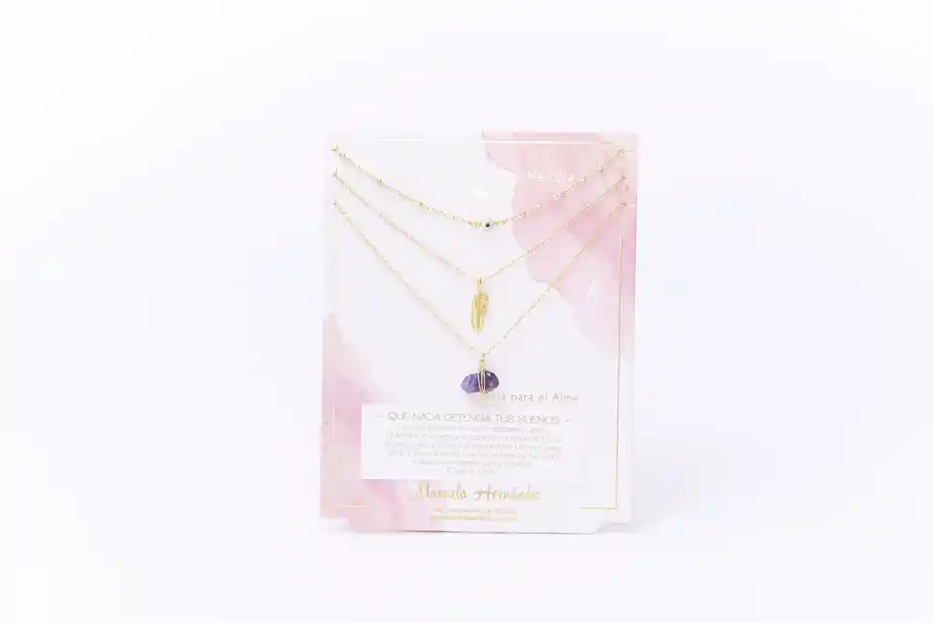 Cadena y apliques Dorados con Baño de Oro 18k. Elaborado con Amatista Natural.