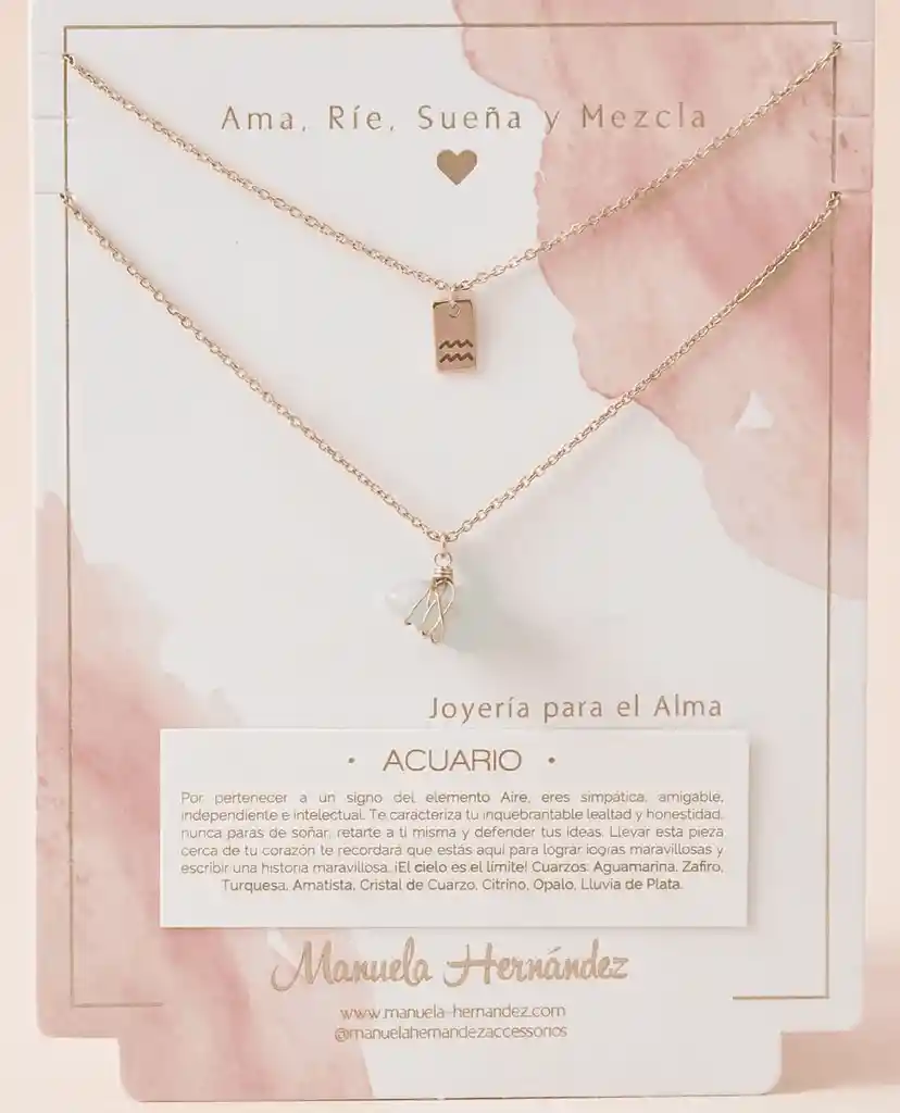La cadena y los apliques dorados cuentan con Baño de Oro 18k. Elaborado con Cuarzos Naturales.