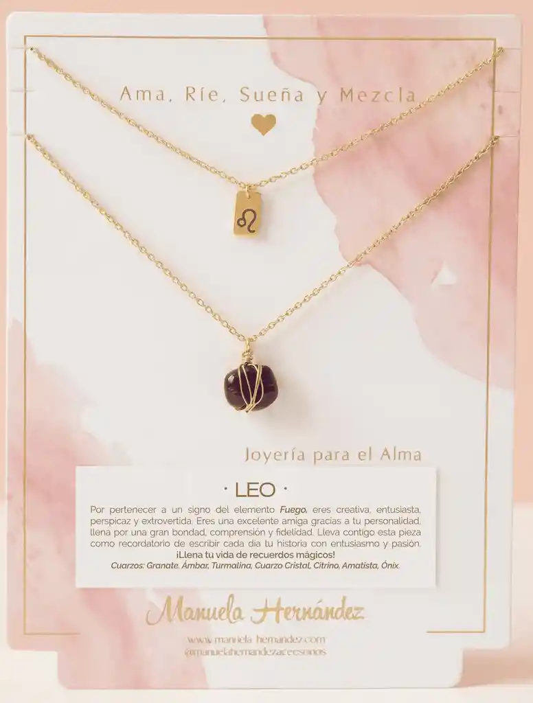 La cadena y los apliques dorados cuentan con Baño de Oro 18k. Elaborado con Cuarzos Naturales.