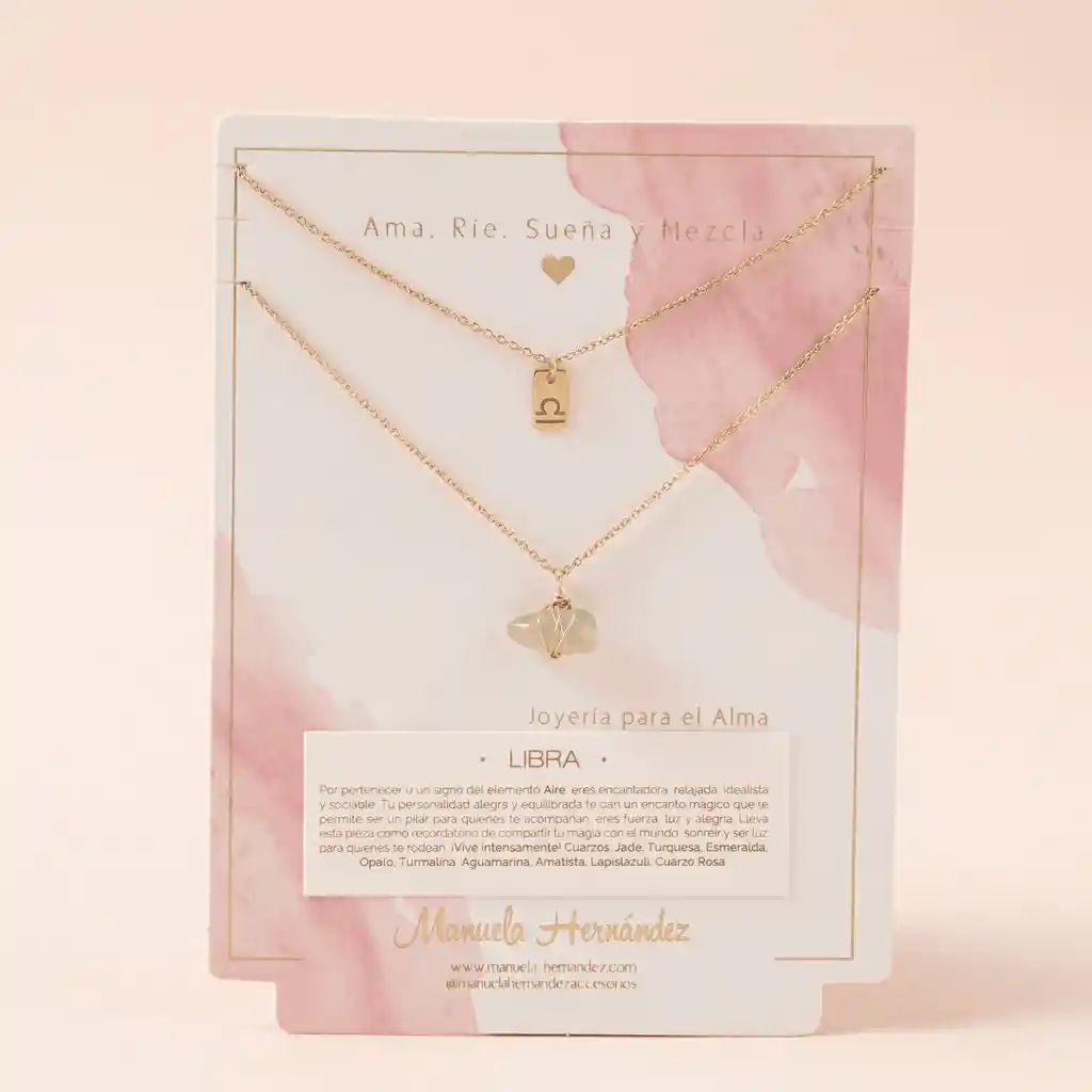 La cadena y los apliques dorados cuentan con Baño de Oro 18k. Elaborado con Cuarzos Naturales.