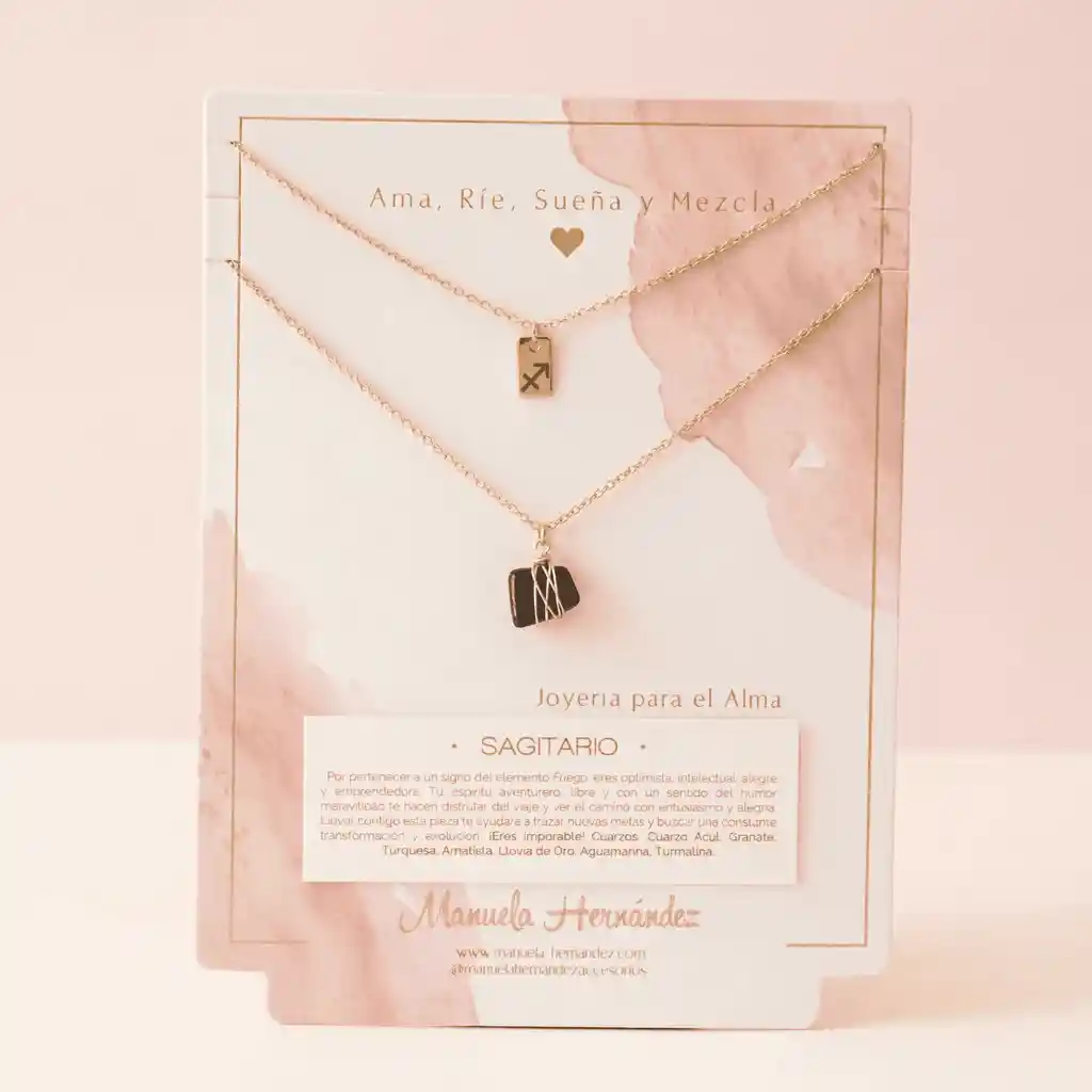 La cadena y los apliques dorados cuentan con Baño de Oro 18k. Elaborado con Cuarzos Naturales.