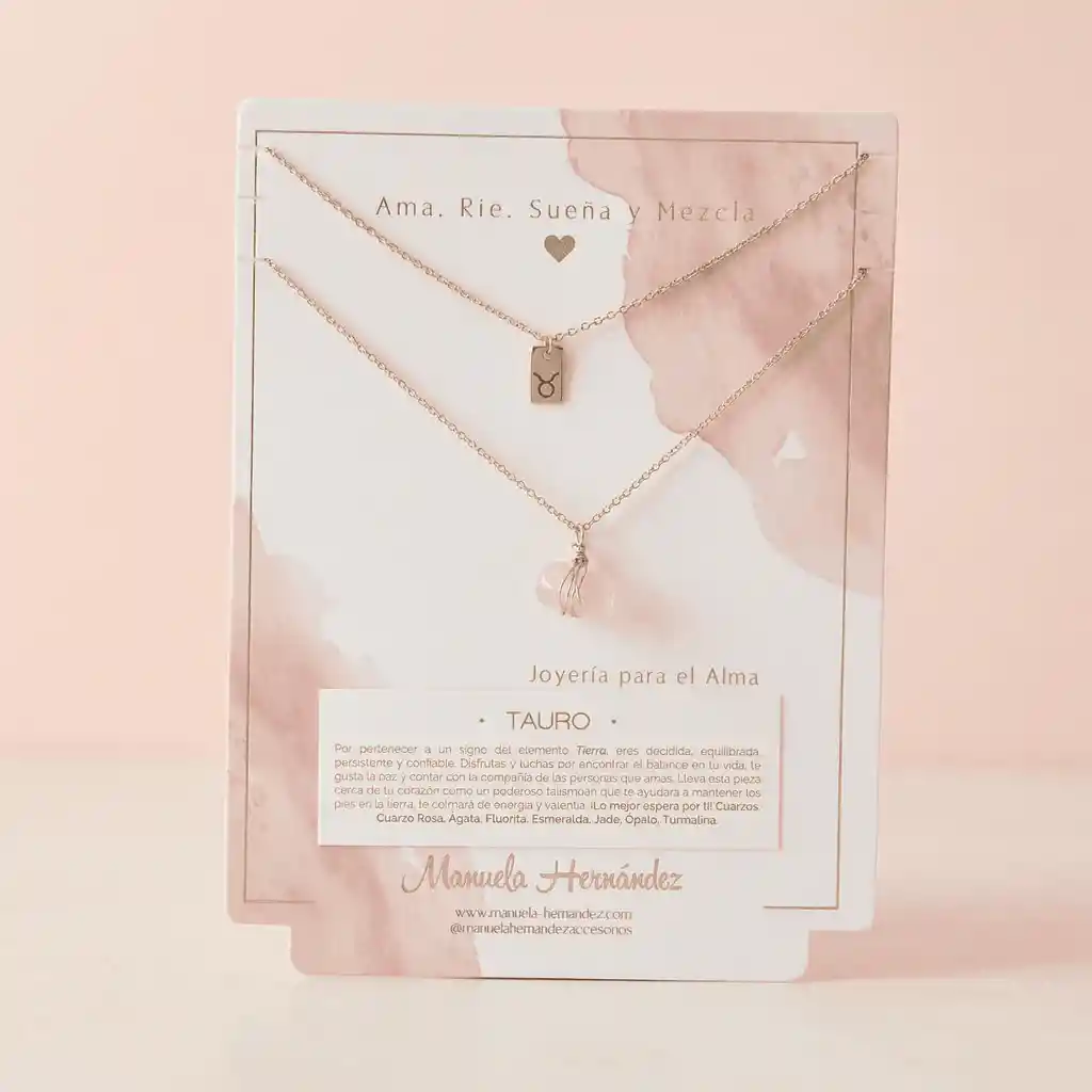 La cadena y los apliques dorados cuentan con Baño de Oro 18k. Elaborado con Cuarzos Naturales.
