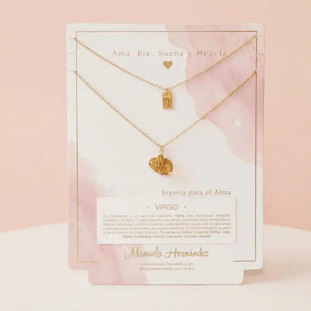 La cadena y los apliques dorados cuentan con Baño de Oro 18k. Elaborado con Cuarzos Naturales.