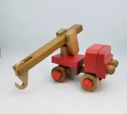 Piezas elaboradas totalmente en madera aproximadas 17 entre tornillos, ruedas, gancho, brazo y piezas para ensamble. Brazo ecualizable que gira 360 grados, con gancho para elevar y cargar Permite graduar la altura del gancho por medio del tornillo Contiene ruedas para su fácil desplazamiento Estimula la imaginación, la motricidad fina Además de jugar, desarrollará la habilidad, el pensamiento lógico y la coordinación entre ojos y manos.