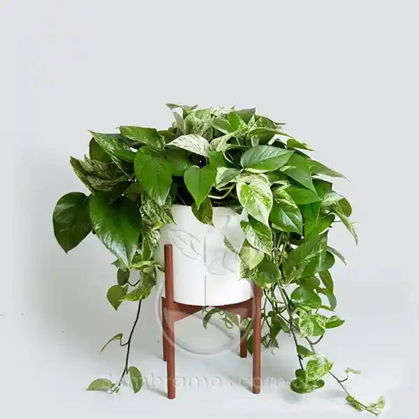 Planta de interior llamativa por sus hojas grandes y moteadas en tonos verdes y crema. Requiere luz indirecta y riego moderado, aportando un toque tropical y elegante a cualquier espacio.