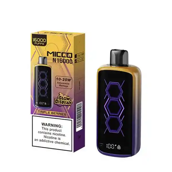 Micco N 16.000 Puffs, Sabor Frutos Rojos 5% PROHIBIDA LA VENTA A MENORES DE EDAD. ADVERTENCIA: ESTE PRODUCTO CONTIENE NICOTINA, LA NICOTINA ES UNA SUSTANCIA QUIMICA ADICTIVA Y NOCIVA PARA LA SALUD. Los líquidos para vapeo contienen: propilenglicol USP, glicerina USP, sabor artificial y nicotina. Este producto puede contener nicotina, una sustancia altamente adictiva que puede generar dependencia, posibles afectaciones arteriales, cardiacas, pulmonares y otras aun no identificadas. No se recomienda su uso a mujeres en embarazo, puede generar lesiones al feto. Mantener alejado de niños y mascotas. No ingerir, puede generar irritación y/o intoxicación. Por favor antes de consumir consulte a su médico posibles afectaciones o sensibilidad a alguno de sus componentes. Los componentes de este producto pueden aumentar la sensación de ansiedad En caso de notar alguna reacción adversa por favor suspenda su uso de manera inmediata. Siga las instrucciones en el envase. No alterar sus componentes. Adquiera sus productos en sitios de confianza No use productos piratas, alterados, o en los cuales no pueda comprobar su buena procedencia, Verifique la reputación del fabricante y distribuidor antes de adquirir cualquier producto Si no es usuario fumador o vapeador no se recomienda su uso bajo ninguna circunstancia Al usar este producto usted es consciente que este producto puede generar afectaciones a su salud, incluyendo aquellas que a la fecha de la compra no se han identificado y que pueden aparecer a largo plazo