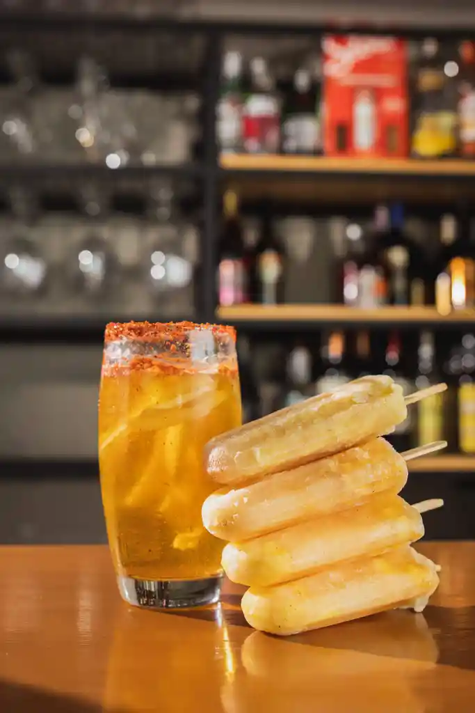 La más relajada y picosita. Paleta de 80grs a base de mango biche, tajin, sal, limón y cerveza.