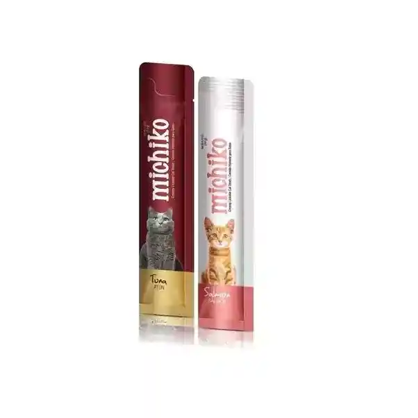 Las Golosinas Cremosas Michiko son un suplemento alimento para suministrar a gatos de todas las edades y razas. Cada sachet contiene 14 gramos de diversion y premio para tu minino. Lo puedes usar en cualquier edad y raza.