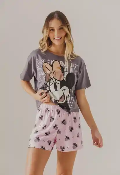Mickey Mouse Pijama Camiseta + Short Gris Talla M