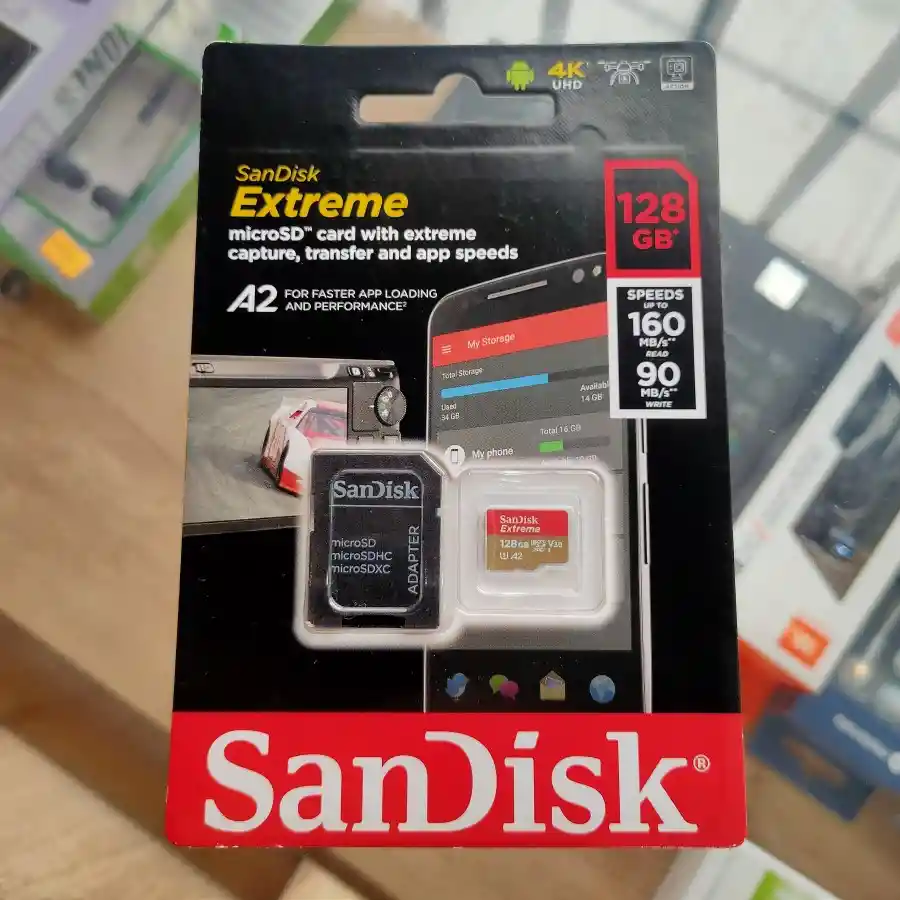 »> Perfecta para trabajo pesado, permite mantener la resolución de nuestros videos y fotos sin perdida de datos »> Capacidad de 128Gb »> Tarjeta MicroSDXC »> Velocidad de lectura es de 160MB/s. »> Velocidad de lectura es de 160 MB/s y de escritura 90 MB/s »> Su resolución máxima de video es 4K Almacena diferentes tipos de datos »> Clase de velocidad: 30 »> A prueba de agua