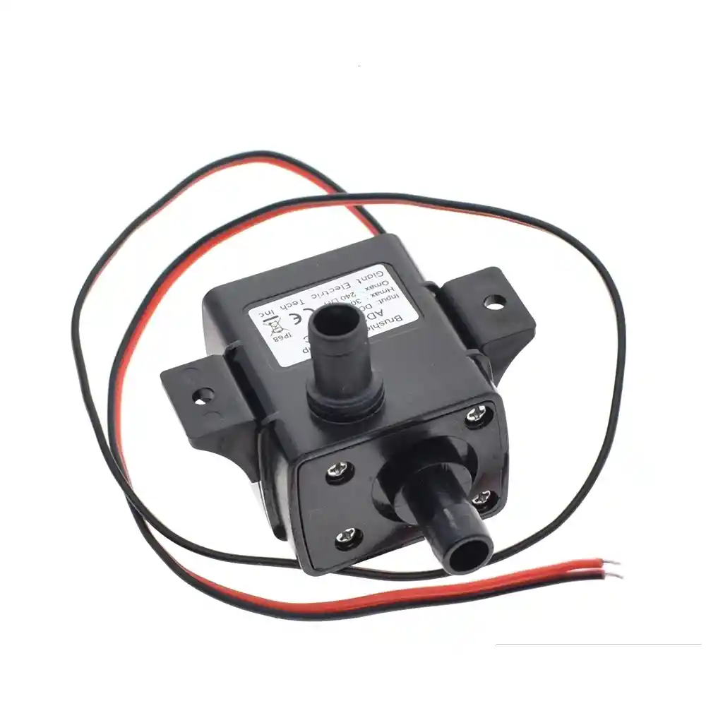 Bomba de agua sumergible sin escobillas DC 12V 3M 240L / H ultra silenciosa Alta calidad mini bomba de agua sumergible electrica Material de la bomba: ABS. De color negro caracteristicas: Rotor magnetico permanente sin escobillas. Super larga vida laboral (20000 horas). Adoptar eje de ceramica de alto rendimiento. El eje esta cerrado con sellado estatico, no dinamico, lo que puede evitar problemas de fugas. Diseño anfibio. Instalacion sumergible y totalmente impermeable. bajo consumo. bajo ruido (menos de 40db). Condicion de uso: continuamente. Fluidos: agua, aceite, gasolina, solucion acida y alcalina. Temperatura de trabajo: 0 ~ 75 grados. Consumo de energia: 4.8W. Tension nominal: 12V DC. Corriente nominal maxima: 400 mA. Caudal maximo: 240L / H Max Head (altura de elevacion): 3M. Ruido: <40dB (la mayoria de 35dB). Clase a prueba de agua: IP68 (puede ser sumergible instalado). Vida util: mas de 20000 horas. Fuente de alimentacion: panel solar, fuente de corriente continua, bateria. Tamaño: 5.5cm x 3.4cm x 4.1cm. Longitud del cable: 45 cm LA COMPRA INCUYE: 1X MICROBOMBA SUMERGIBLE ad209-1230c 12V 3Mt 240L/H