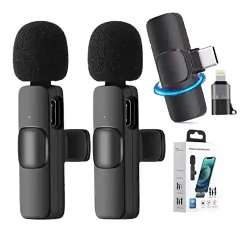 MICRÓFONO INALAMBRICO PARA CELULARES CON DOS MICROFONOS PARA GRABACION DE DOS FUENTES DE AUDIO AL MISMO TIEMPO. RECEPTOR CON CONECTOR TIPO C O CON CONECTOR LIGHTNING COMPATIBLE CON TODAS LAS REFERENCIAS DE IPHONE. Mini Micrófono de Solapa Inalámbrico, Plug--Play para Grabación de Video, Transmisión en Vivo de YouTube Facebook, Vlog, Sincronización Automática de Entrevistas, Reducción de Ruido, Compatible con Teléfonos Android USB Tipo-C, Tableta, Computadora No se necesita aplicación ni Bluetooth GARANTÍA EN TIENDA POR DEFECTOS DE FABRICA.