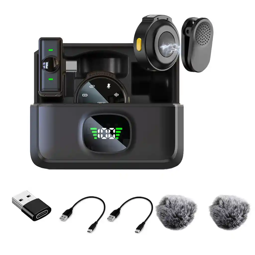 Plug and Play: no necesita Bluetooth o aplicación. El micrófono lavalier inalámbrico se puede enganchar al collar para grabar audio y video manos libres. Solo tienes que conectar el receptor a tu dispositivo y encender el micrófono, comenzará a funcionar para ti pronto. Diseño para profesionales: el micrófono Caiord J6 cuenta con un formato de audio de 48 kHz/24 bits para una captura de sonido precisa. Con una relación señal/ruido de 60 dB, ofrece un audio excelente con un mínimo ruido de fondo. Además, puede manejar hasta 95 dB de nivel de presión de sonido, perfecto para grabar sonidos agudos. Los diales visuales han sido diseñados para proporcionar una visión clara del estado de uso del micrófono, incluida la conexión, la función de reducción de ruido, el silencio, el uso de la batería y más. Transmisión inalámbrica de 165 pies y recargable: este micrófono Lavalier cuenta con una señal de audio consistente, capaz de alcanzar una notable distancia de transmisión inalámbrica de hasta 165 pies. Equipado con un chip DSP de alta calidad, garantiza una transmisión aún más estable. El transmisor de micrófono inalámbrico cuenta con una batería recargable incorporada, que ofrece hasta 6 horas de funcionamiento con una sola carga, o unas impresionantes 42 horas con el estuche de carga Micrófono omnidireccional con reducción de ruido: admite un solo clic en el botón amarillo para encender/apagar la cancelación de ruido en TX y RX. El chip inteligente de cancelación de ruido activo integrado y la avanzada tecnología de transmisión de 2.4 GHz, que te permite grabar claramente en entornos ruidosos, lo que puede proporcionar un sonido más vívido, suave, natural y estéreo para grabar o video en tiempo real. Compatible con la mayoría de dispositivos: compatible con iPhone, iPad, PC, Android, cámara, etc. Funciona con el sistema IOS 6.0 o superior, sistema Android 3.0 o superior, se puede utilizar con iPhone, Android, etc. El micrófono de mano es adecuado para entrevistas, conferencias en línea, podcasting, vlogging, transmisión en vivo. Lo que obtienes: 2 TX (2 transmisores) + 1 x RX (1 receptor) + 1 adaptador +2 parabrisas + funda de carga + 2 cables de carga + instrucciones (idioma español no garantizado).