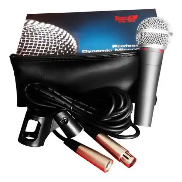 Micrófono dinámico unidireccional •Conector XLR balanceado •Cuerpo metálico •Grilla en acero •Estuche para trasporte del micrófono •Incluye cable de 5 metros xlr •Incluye piaña
