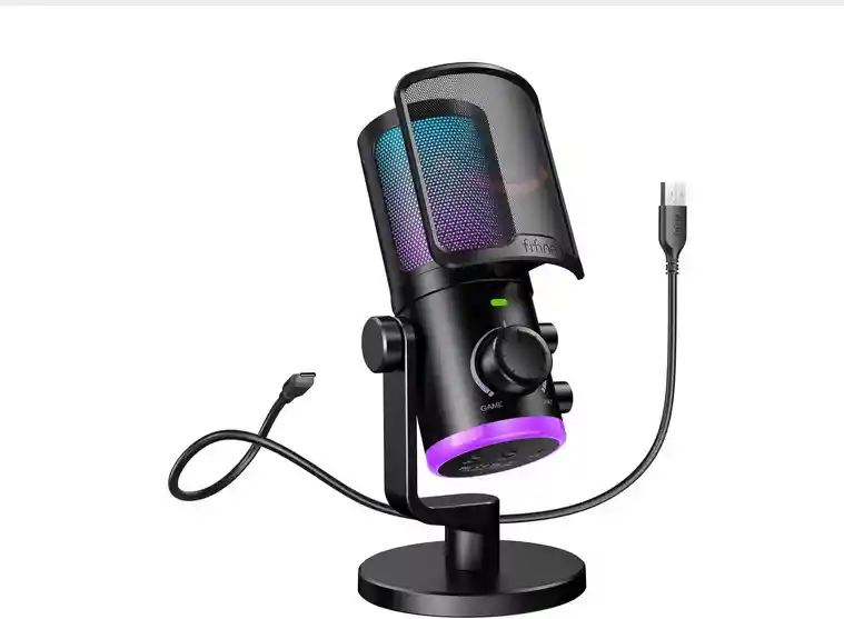 Especificaciones: Tipo: Micrófono dinámico USB Patrón polar: Cardioide Frecuencia de respuesta: 50Hz - 16kHz Sensibilidad: -48dB 3dB Impedancia de salida: 600 Iluminación: Efectos RGB personalizables Compatibilidad: Windows, Mac y PS4/PS5 Contenido: Micrófono FIFINE AM6 Cable USB de alta calidad