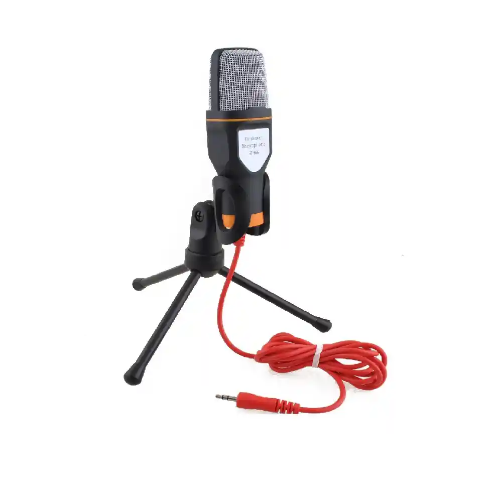 \DetallesCaracterísticas 1. Plug and play, trabaje con cualquier software de grabación o plataforma de comunicación, para que no tenga que descargar controladores o herramientas especiales. 2. El micrófono tiene un patrón de captación omnidireccional, perfecto para charlas en línea, grabación vocal, streaming, podcasting, juegos, videoconferencias, estudio en casa, etc. 3. Incluye soporte de escritorio con trípode que se puede ajustar a un ángulo, orientación o posición y se pliega fácilmente. 4. El micrófono no solo se utiliza para PC y portátiles, sino también para teléfonos, tabletas o dispositivos xbox (úselo con un adaptador si es necesario). Nota 1. Si sus dispositivos tienen dos puertos de 3,5 mm (entrada y salida), conecte el enchufe del micrófono al puerto de entrada.2. Si sus dispositivos solo tienen un puerto de 3,5 mm, utilice un adaptador (no incluido) para que el micrófono funcione correctamente. 3. El micrófono no se puede utilizar sin software de grabación, utilícelo con software de chat, software de canto, software de juegos, etc.Especificación Color: NegroPatrón polar: Omnidireccional Respuesta de frecuencia: 50Hz-16KHz Sensibilidad: -30 ± 3dB Impedancia: ≤2200Ω Voltaje de operación: 1.5V Relación S / N: ≥36dB Longitud del cable: 1.8m Tipo de enchufe: 3,5 mm\