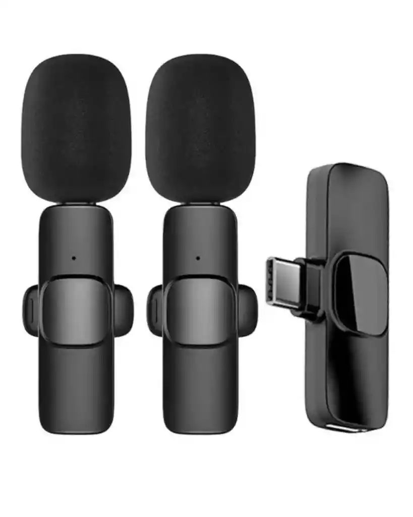 Micrófono inalámbrico, solapa, lavalier, K9, 2 en 1, doble transmisor, un receptor, conexión USB Tipo C, plug and play, sin aplicaciones, sin Bluetooth, emparejamiento automático, reducción de ruido inteligente, chip de cancelación activa, audio omnidireccional, captación 360 grados, alta fidelidad, latencia ultra baja, frecuencia 2.4 GHz, alcance 20 metros, batería recargable, autonomía 6 a 10 horas, puerto de carga en el receptor, carga passthrough para celular, diseño compacto, ligero, clip de sujeción resistente, compatible con Android, compatible con iPhone 15, compatible con tablets, ideal para TikTok, YouTube, Facebook Live, entrevistas, vlogging, clases virtuales, transmisiones en vivo, material ABS, color negro, estuche de transporte, cable USB incluido, fácil de usar, portátil, profesional, económico, eficiente.