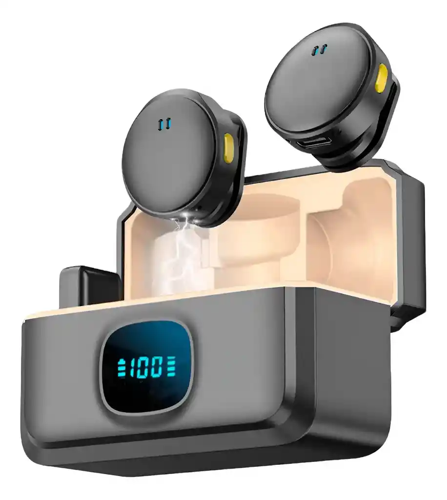 - Distancia de transmisión: 10-30 metros - Reducción de ruido: Reducción de ruido de nivel 3 - Reverberación: compatible - Retardo de sonido: 20ms - Sensibilidad del micrófono: -38dB 3dB - Respuesta de frecuencia: 20 Hz-20 KHZ - Relación señal/ruido: 70 dB - Duración de la batería: 6H aproximadamente - Batería del compartimento de carga: 300 mA/h - Voltaje de entrada del contenedor de carga: 5V A1 - Temperatura de funcionamiento: -10°C-50°C - Cómodo de llevar - Práctico y fácil de usar - Puede transmitir en vivo en: Clases virtuales, conferencias, grabaciones de voz, videos, entrevistas, YouTube. - Conexión inalámbrica - Tamaño cada micrófono: 3cm - Material de fabricación: ABS - Perfecto para tu celular Android con entrada Tipo C TE ENTREGAMOS: 2 - Micrófonos 1 - Cable de carga USB a Tipo C 1 - Manual de instrucciones en ingles 1 - Receptor Tipo C