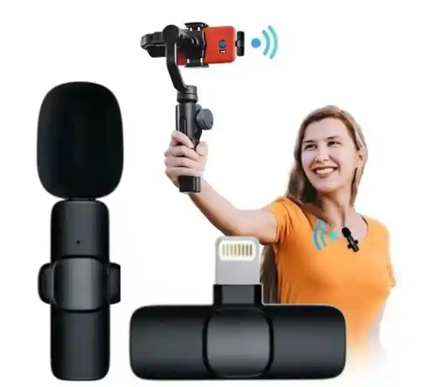 MICRÓFONO INALAMBRICO PARA IPHONE - RECEPTOR CON CONECTOR Lightning Compatible con cables OTG para adaptar a otros conectores. Micrófono portátil, con reducción de ruido para grabación de videos, audio, entrevistas, en vivos desde tu celular y de esa manera asegurar un excelente audio en tu grabación. CARACTERISTICAS Práctico y fácil de transportar. De calidad 100% garantizado Puede transmitir en vivo en cualquier momento, en cualquier lugar, sin límites. Compatible con iOS y con puerto Lightning y compatible con OTG puede usarlo. Conexión de 2,4 GHz en segundo, plug and play, sin retraso. No es necesario descargar ninguna aplicación, fácil de operar. Retraso de tiempo inferior a 16,5 ms, sincroniza el sonido en tiempo real. Reducción de ruido profesional, concéntrese en su propia voz. Sonido original sin pérdidas, experimenta el sonido original real. 20m de alcance aceptable, accesible y sin restricciones. Tipo de micrófono: condensador Tamaño: 9 x 3,2 x 1.5 Cm Material:ABS Color: Negro