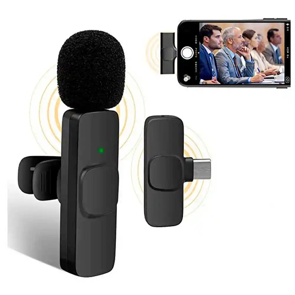 MICRÓFONO INALÁMBRICO PARA CELULAR CONDENSADOR Compatible con cables OTG para adaptar a otros conectores.Micrófono portátil, con reducción de ruido para grabación de videos, audio, entrevistas, en vivos desde tu celular y de esa manera asegurar un excelente audio en tu grabación. *CARACTERÍSTICAS • Compatible solo para ANDROID • Práctico y fácil de transportar. • De calidad 100% garantizado • Puede transmitir en vivo en cualquier momento, en cualquier lugar, sin límites.• Compatible con IOS y con puerto Tipo C y compatible con OTG puede usarlo. • Conexión de 2,4 GHz en segundo, plug and play, sin retraso .• No es necesario descargar ninguna aplicación, fácil de operar. • Retraso de tiempo inferior a 16,5 ms, sincroniza el sonido en tiempo real .• Reducción de ruido profesional, concéntrese en su propia voz. • Sonido original sin pérdidas, experimenta el sonido original real.Alcance de 20 metros con sonido aceptable