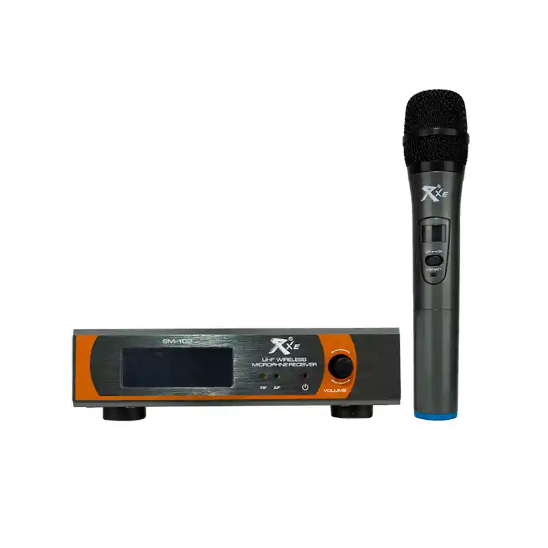 MICRÓFONO INALÁMBRICO UHF Micrófono inalámbrico de mano en frecuencia UHF con display en la base receptora y en el micrófono para tener mayor información sobre la carga de la batería y frecuencia, cobertura de 50 mts, trabaja con doble batería AA para un mayor rendimiento, solo cuenta con una frecuencia y canal, carcaza del micrófono plástica, salida en jack 1/4 incluye el cable, para una mejor cobertura y calidad de sonido. ESPECIFICACIONES Micrófono inalámbrico UHF Cobertura de 30-50 Metros Trabaja con batería AA 1 Frecuencia y canal Salida en Jack 1/4 Máximo se pueden usar 2 micrófonos en un mismo recinto INCLUYE 1 receptor de micrófono inalámbrico UHF 1 micrófono inalámbrico 1 Cargador corriente 110 v 1 par de pilas AA 1 cable 1x1 de plug 1/4 a 1/4