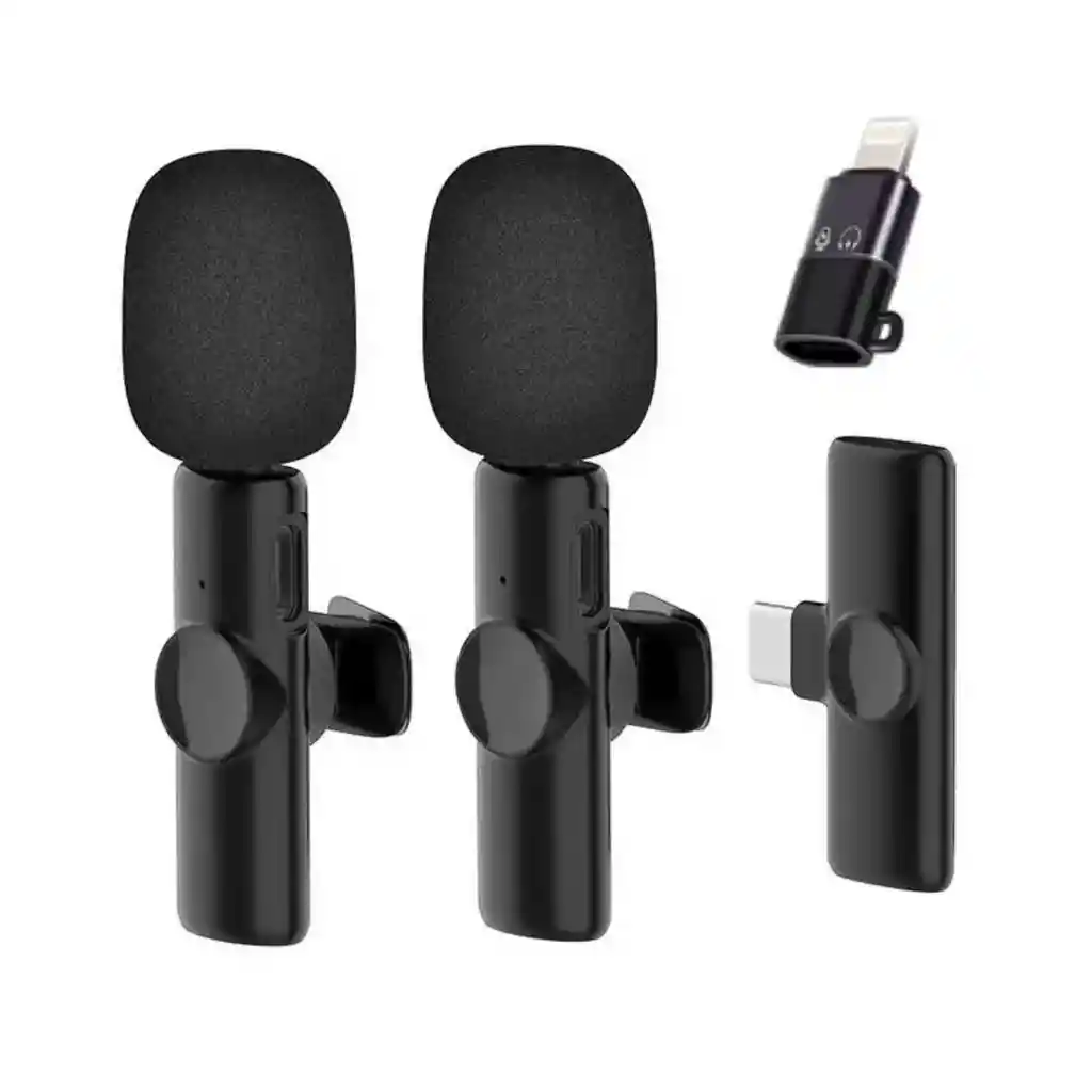 Micrófono portátil, con reducción de ruido para grabación de videos, audio, entrevistas, en vivos desde tu celular CARACTERÍSTICAS: Práctico y fácil de transportar. De calidad 100% garantizada. Puede transmitir en vivo en cualquier momento, en cualquier lugar, sin límites. Compatible con iOS y con puerto Lightning y compatible con OTG puede usarlo. Conexión de 2,4 GHz en segundo, plug and play, sin retraso. No es necesario descargar ninguna aplicación, fácil de operar. Retraso de tiempo inferior a 16,5 ms, sincroniza el sonido en tiempo real. Reducción de ruido profesional, concéntrese en su propia voz. Sonido original sin pérdidas, experimenta el sonido original real. Tipo de micrófono: condensado. Material:ABS. Color: Negro.