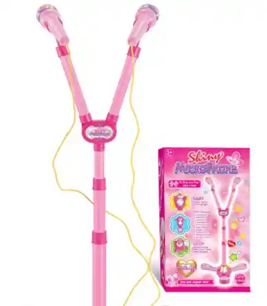 microfono karaoke infantil de niña con conexión para el reproductor. Tiene una altura de 104 cm, requiere 3 pilas AA . Incluye cables auxiliaresAdvertencia, se debe utilizar bajo la vigilancia de un adulto. Usar los articulos de proteccion a criterio del adulto que supervisa. En caso de haber piezas pequeñas, se debe tener especial cuidado de que no las ingiera.