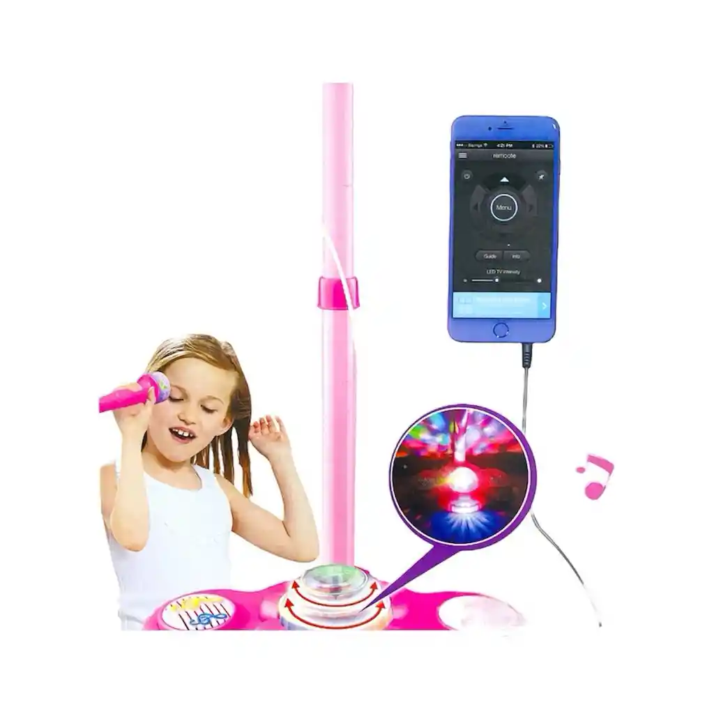 ¡Las niñas demostrarán su talento como verdaderas cantantes! Excelente introducción al mundo musical de las niñas. Micrófono infantil, ideal para las pequeñas de la casa. -Amplifica la voz -Incluye base para micrófono con bola giratoria de luz -Conexión a celular o MP3 a través de cable auxiliar. Dimensiones del micrófono con la base: 85 cm x 24.5 x 16 cm Dimensiones de la caja: 32 cm x 16.5 cm x 8 cm Requiere 3 pilas AA no incluidas. Envíos a nivel nacional, ventas al por mayor y al detal. ¿Preguntas? Escríbenos tus preguntas y te contestaremos en el menor tiempo posible. Garantía del vendedor: 30 días