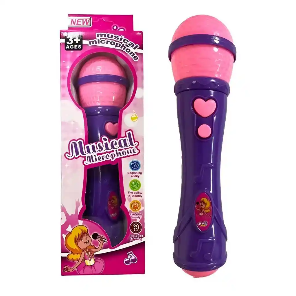 ¡Despierta la estrella musical que tu pequeña lleva dentro con este encantador y vibrante micrófono de juguete! Diseñado en un alegre color y con un tamaño perfecto para las manos de los niños, este micrófono es el compañero ideal para horas de diversión, canto y juego imaginativo. Con solo presionar sus sencillos botones, las futuras artistas podrán dar sus primeros conciertos en la sala de casa, desarrollando su confianza, creatividad y amor por la música. Es el regalo perfecto para cualquier ocasión, prometiendo convertir cualquier momento en un escenario lleno de alegría, ritmo y actuaciones inolvidables. /// El juguete incluye baterías /// Ficha Técnica: Material: Plástico ABS no toxico Alimentación: baterías AAA ( Incluidas ) Dimensiones : 20 cm x 5 cm x 5 cm Edad recomendada: + 3 años Referencia: 777 Certificado de conformidad: E5-0359-2021 ** _Para defectos de fábrica o retractos: \_Por favor revise el producto apenas lo reciba y antes de usarlo. No aplican ley de retracto o defectos de fábrica luego de usar el producto. Se manejan máximo 5 días para reportar defectos de fábrica (por ejemplo, producto funciona mal, piezas faltantes, rotas, etc). Para hacer efectiva la devolución el producto debe devolverse con el empaque original, el cual debe estar en buen estado, incluir todos los documentos y las partes completas y sin daños.