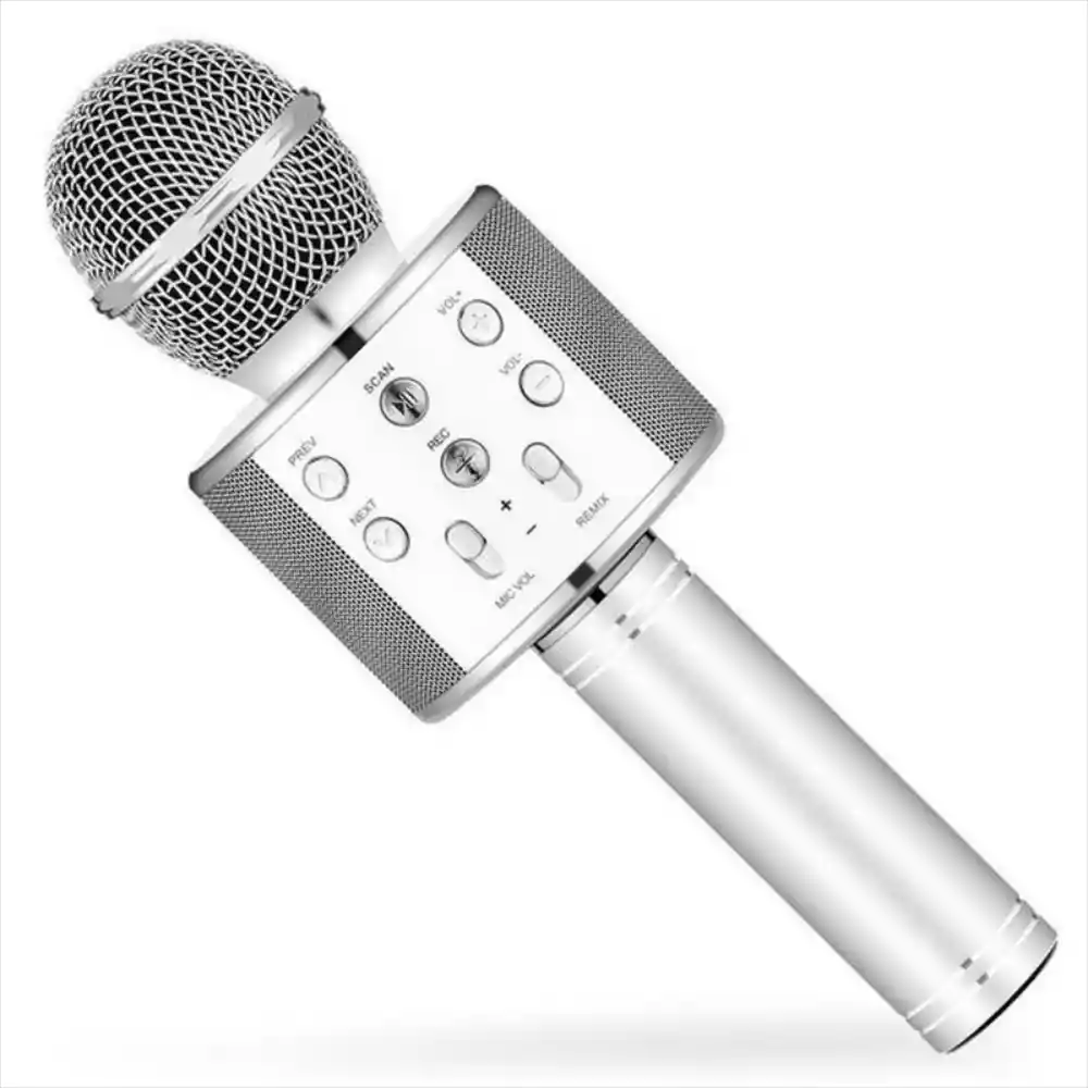 .- Micrófono y altavoz 2 en 1: Canta y escucha tu voz y la música simultáneamente. - Conexión inalámbrica Bluetooth 4.1: Transmisión estable y bajo consumo de energía para horas de diversión. - Reducción de ruido inteligente: Diseño de tres capas para un sonido claro y sin interferencias, calidad de karaoke. - Función de tarjeta TF: Reproduce tus canciones directamente desde una tarjeta de memoria. - Panel de ajuste multifunción: Controla el volumen del micrófono y la música, el eco y más. - Efecto de reverberación Echo: Añade profundidad y profesionalismo a tu voz. - Batería recargable integrada: 1800 mAh. - Diseño portátil y elegante: Fabricado con materiales de alta calidad (ABS + aleación de aluminio)