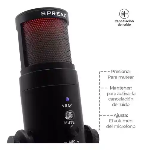 Micrófono profesional USB perfecto para grabación de estudio, proporciona alta calidad, claridad y precisión a la hora de realizar streaming, podcast, locución, grabación o jugar en linea. Incluye funda de espuma y filtro anti POP para reducir el golpe por viento debido a la presión sonora, controlando los sonidos plosivos emitidos por la boca ademas de cuidar el micrófono de salpicaduras aumentando su vida útil. Logra una mayor fluidez de capacitación vocal y disminución del ruido no deseado mediante el patrón polar de cardioide y la función para reducir el ruido. Puedes conectar una diadema mediante el puerto 3.5mm ubicado en la zona inferior del micrófono. Contenido del empaque *Micrófono *Cable de conexión *Brazo de soporte profesional *Soporte de escritorio *Funda de espuma *Filtro anti POP