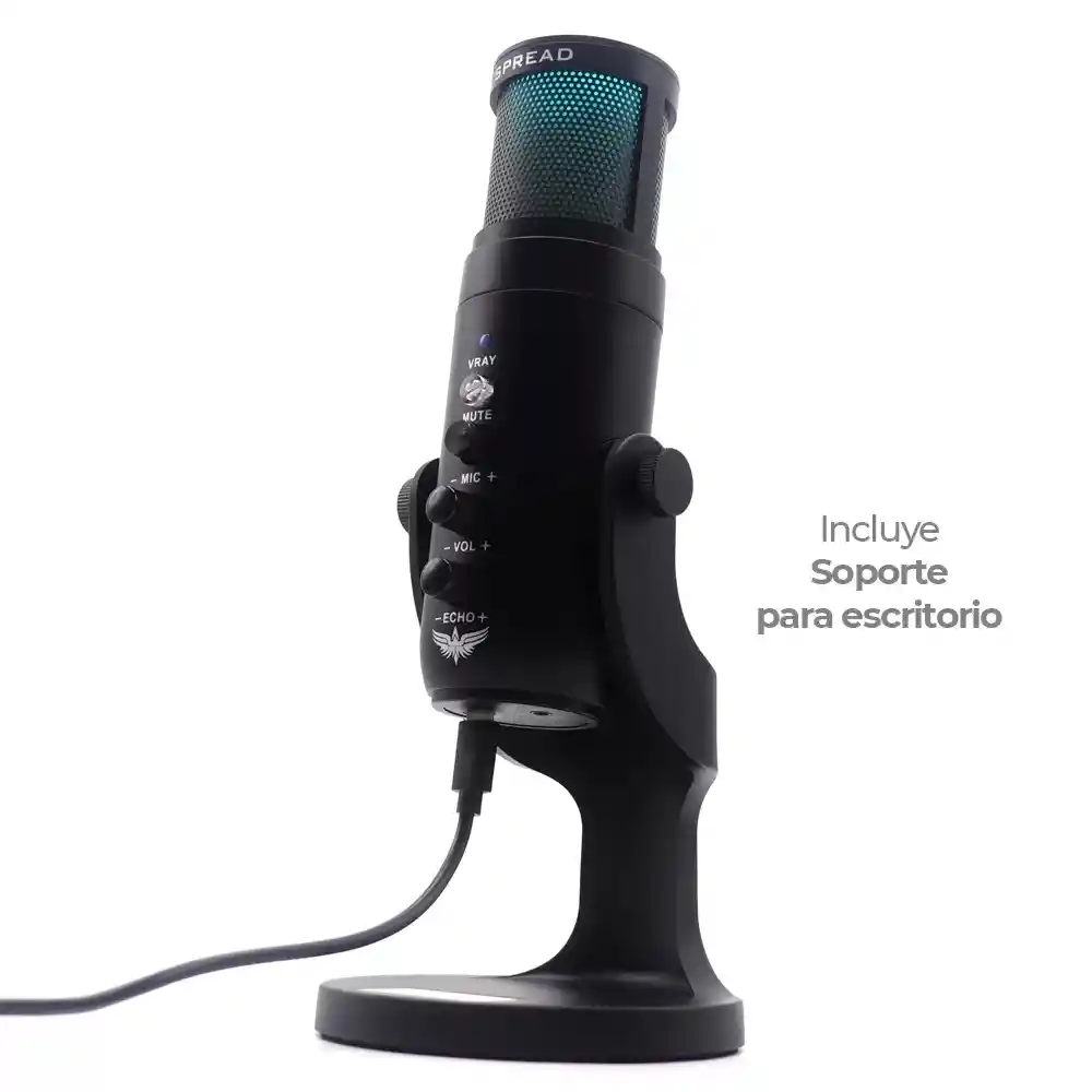 Micrófono JYR Plug N Play: el micrófono adopta un patrón polar supercardioide que prioriza las fuentes de sonido directamente delante del micrófono. Fácil de usar, conectar y usar. Ampliamente compatible con gamepad, laptop, escritorio, teléfono celular, etc. Conector de auriculares para monitoreo en tiempo real, diseñado con 3. Conector de auriculares de 0.197 in e interfaz tipo C en la parte inferior del micrófono, puedes controlar el efecto de grabación a tiempo real. Efecto de luz dinámica RGB: 6 modos de color constante y cambio de color conmutables para satisfacer tus necesidades; deslumbrantes efectos de luz dinámica RGB crean un ambiente de sonido de ensueño para darte una nueva experiencia. Pulsa para silenciar el sensor: cuando encuentres emergencias, puedes tocar el sensor de silencio en la parte superior del micrófono para silenciar rápidamente, y el indicador LED puede mostrar visualmente el estado de funcionamiento. Ajuste de control libre: el eco y el volumen son ajustables por la perilla. Pulsa el botón MIC para encender la reducción de ruido para un sonido más claro; el soporte giratorio permite ajustar fácilmente el micrófono a la dirección deseada