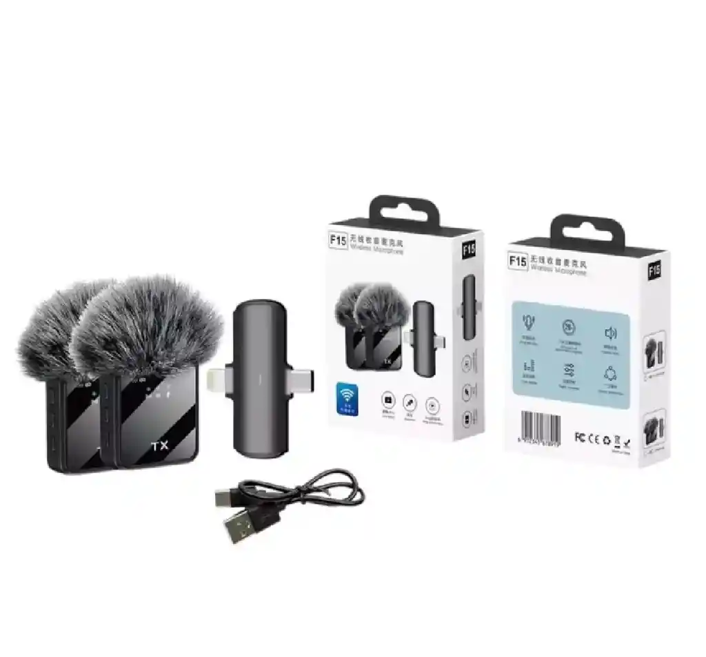 Sistema de micrófono inalámbrico compacto: fácil de llevar. Hay un clip en la parte posterior del receptor y el transmisor, que se puede instalar directamente en la zapata de la cámara o en el teléfono móvil. Un solo producto pesa solo 1.06 oz, y tampoco hay presión en el collar. Fácil de usar: Después de encender el transmisor y el receptor, se conectan automáticamente durante unos 3 segundos. El receptor puede utilizar un cable TRS o TRRS de 0.138 in (incluido en el paquete) para conectarse a teléfonos móviles, portátiles, cámaras SLR y otros dispositivos para comenzar a grabar. Si el dispositivo no tiene una interfaz de 0.138 in, utiliza un adaptador estándar para la transferencia (no incluido en el paquete). Tecnología anti-interferencia de señal UHF: C-01 por defecto al canal B, con luz azul y 30 bandas de frecuencia ajustables UHF. El rango de banda de frecuencia es 550.5-579.5mhz. En caso de interferencia o ruido, simplemente presione la tecla de ajuste del transmisor para cambiar la banda de frecuencia, y el receptor ajustará automáticamente la frecuencia sin otras operaciones. Micrófono incorporado: micrófono de condensador integrado de alta sensibilidad, captación omnidireccional, señal estable. El paquete contiene una bola de lana de prevención de reventones, que se puede instalar adicionalmente en el micrófono incorporado del transmisor. Hay una distancia de conexión de 164.0 ft (164 pies) sin otras interferencias. Amplias aplicaciones: El micrófono inalámbrico de solapa se puede utilizar para programas de transmisión en vivo o grabación en plataformas de terceros como Tiktok y YouTube. Se puede utilizar como micrófono para grabar varios vlogs y videos ASMR, así como podcasting o enseñanza en línea. Lo que obtienes en la compra 2 x Micrófono 1 x Receptor 1 x Filtro cancelación de ruido 1 x Cable USB Tipo C 1 x Cable Tipo C Lighting 1 x Cable 3.5