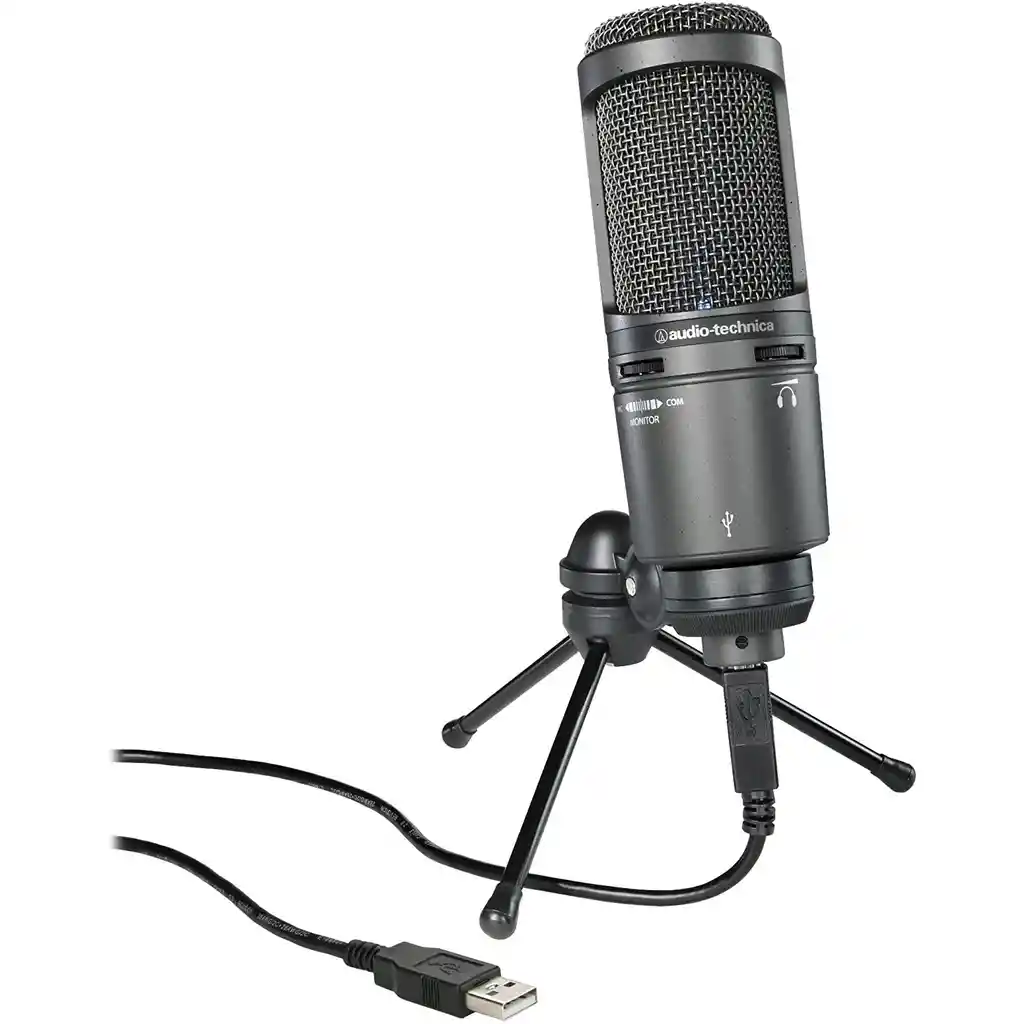 El micrófono USB de condensador Cardioide AT2020USB + de Audio-Technica está diseñado para capturar digitalmente música y otras fuentes de audio. Es ideal para cantantes / compositores, podcasters, artistas de voces en off, grabadores de campo y grabaciones de home studio. El micrófono cuenta con un patrón de captación Cardioide, rechazo fuera del eje y resolución de 16 bits / 44.1 o 48 kHz. El AT2020USB + también incorpora funciones de monitoreo, como un conector para audífonos incorporado con control de volumen, lo que le permite controlar directamente la señal de su micrófono sin latencia. También ofrece un control de mezcla que combina la entrada del micrófono y el audio pregrabado de su DAW. El amplificador de audífonos interno de alto rendimiento ofrece un sonido claro con suficiente espacio para crear un volumen amplio. El micrófono AT2020USB + es compatible con Windows 7, Vista, XP y Mac OS X. Incluye un soporte de escritorio para trípode, una funda protectora, un soporte para micrófono y un cable USB.