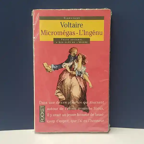Micromegas es un Diario de Viaje: el Héroe Deja a Sirio Para Entrenar su Mente y Corazón, va a Saturno, Luego a la Tierra. ve Así Con Nuevos Ojos el Mundo Donde Reinan Los “Prejuicios”. es, Por Tanto, un Itinerario Filosófico: el Tema Principal es la Relatividad Del Conocimiento Humano, Dividido en Breves Capítulos, Aventuras y Lecciones. El Humor Reina en Todas Partes. El Héroe Camina Como Gulliver en un Espacio Tranquilizador de Planeta en Planeta, Para Descubrir Que Está Perfectamente en su Lugar en "La Gran Cadena de Seres". La Odisea Del Espacio Nos Devuelve a Nuestra Silla y al Secreto Del Libro Del Destino, Cuyas Páginas Están en Blanco. L'ingénu También Construye un Viaje, Echa Una Mirada Irónica a la Sociedad Francesa. Esta Vez, se Trata de Una Comedia Social Que se Desarrolla, en Tablas Rápidas y Caricaturescas, Uno de Los Mejores Cuentos de Voltaire. (Idioma: Francés) ISBN: 9782266198035