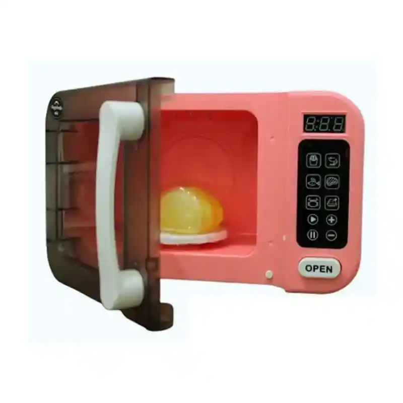 Estimula el Aprendizaje Cognitivo y el Juego de Roles Este colorido microondas de juguete permite que los niños exploren el mundo de la cocina de forma divertida y educativa. Ideal para desarrollar habilidades como la secuencia de pasos, el pensamiento lógico y la comprensión de causa y efecto desde temprana edad. Diseño Interactivo y Realista - Colores llamativos (rosa y morado) que despiertan la creatividad - Puerta transparente que muestra un alimento de juguete en su interior - Pantalla digital y botones con íconos de comida (pollo, pizza, pan, taza) que simulan funciones reales - Manija grande y botón “OPEN” para facilitar el acceso y fortalecer la motricidad fina Inspirado en el Método Montessori Fomenta la exploración autónoma y el desarrollo de habilidades prácticas, alineándose con principios Montessori. Los niños aprenden a identificar alimentos, seguir rutinas y participar en juegos sociales como preparar la comida para sus muñecos o simular una cena familiar. Beneficios para el Desarrollo Infantil - Mejora la coordinación motora fina al presionar botones y abrir la puerta - Promueve el desarrollo del lenguaje al narrar sus aventuras culinarias - Estimula la inteligencia emocional mediante el juego de cuidado y atención Regalo Ideal para Niños y Niñas de 3 Años en Adelante Perfecto para cumpleaños, Navidad o cualquier ocasión especial. Este microondas mini combina diversión y aprendizaje en un solo juguete educativo.