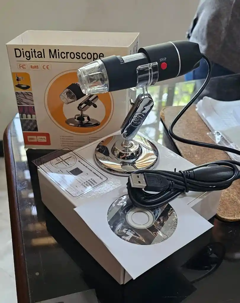 1. Microscopio práctico y útil para niños, estudiantes, ingenieros, inventores y otras personas que necesitan ampliar y explorar las micro cosas. 2. Profesional, más versátil, se puede aplicar a la investigación de laboratorio, componentes electrónicos, identificación de joyas, etc. 3. Lupa 1600x. 4. 8 luces LED integradas, la perilla de ajuste del microscopio digital puede cambiar el enfoque y el brillo. 5. Sensor CMOS de color HD, DSP de 24 bits, súper resolución 640 * 480 a 2592 * 1944, zoom digital 5X, contiene software de medición digital y regla de calibración, compatible con USB3.0 amp; USB 2.0 y amperio; USB 1.1. 6. Funciona con Windows 2000/2003/XP/Vista/ 7/8/10. 7. Rango de enfoque: de 10 mm a 250 mm 8. Relación de aumento: 1600x 9. Formato de video: AVI 10. Formato de foto: JPEG 0 BMP 11. Fuente de luz: 8 LED (ajustable mediante rueda de control) 12. Interfaz de PC: USB1.0 amp; USB2.0