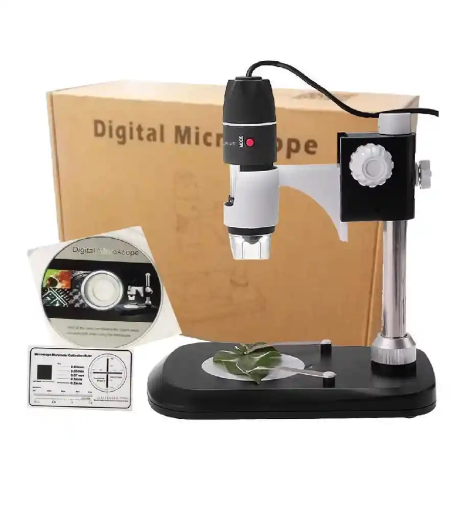 🔬 Microscopio Digital 1600X USB con Base Ajustable Explora el mundo microscópico con este potente microscopio digital de hasta 1600 x, ideal para estudiantes, técnicos, aficionados y trabajos de precisión. Su diseño práctico y conexión USB permiten visualizar y capturar imágenes directamente en tu computadora. ✨ Características principales: 🔍 Aumento digital hasta 1600X para observar detalles microscópicos con gran claridad 💻 Entrada USB compatible con PC y laptop 📸 Permite tomar fotos y grabar videos en tiempo real 💡 Iluminación LED integrada con ajuste de intensidad para mejor visibilidad 🧱 Base metálica estable y ajustable que brinda mayor precisión y comodidad 🎯 Enfoque manual para un control exacto de la imagen 📏 Incluye regla de calibración para mediciones precisas 🧩 Ideal para observar circuitos electrónicos, monedas, plantas, insectos, textiles y más 📦 Contenido del paquete: Microscopio digital Base con soporte ajustable Cable USB CD de software Regla de calibración ✅ Perfecto para uso educativo, laboratorio, reparación electrónica y hobby. Un equipo práctico, moderno y fácil de usar que te permitirá ver detalles que el ojo humano no puede percibir.
