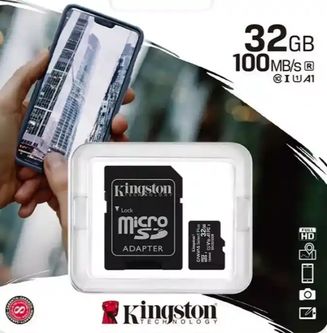 Tarjeta de memoria Kingston SDCS Canvas Select con adaptador SD 32GB ✅Targeta de Memoria Original Microsd Sdhc 32gb Kingston Clase 10 100 Mb/s Video Hd Cell Tablet Camaras Le invitamos a mirar las imágenes del producto ✅Características. Formato Micro SD Capacidad 32GB Velocidad de transferencia hasta 100MB/s Clase 10 para grabación de video Clasificación UHS-1 para grabación de video en alta definición FullHD ✅! ESTAMOS EN GOOGLE EN 1 PÁGINA (COMPUVIRTUAL MEDELLÍN) ✅!Compuvirtual Medellín! Desde 2001 Comercializando Productos de Tecnología y algo más… a precios competitivos para nuestros compradores. Partes, Periféricos, Suministros En PC y demás. 🛵 Domicilios en Todo MEDELLÍN y el Valle de Aburrá. SOMOS Tienda FÍSICA 🎪 También estamos en FC, INT, Tiktok