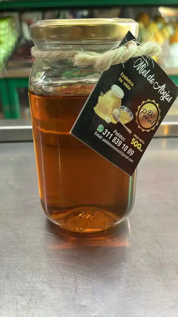 Miel de abejas - DI Panal: Presentación en frasco de vidrio reciclable. Peso neto 500 gramos.