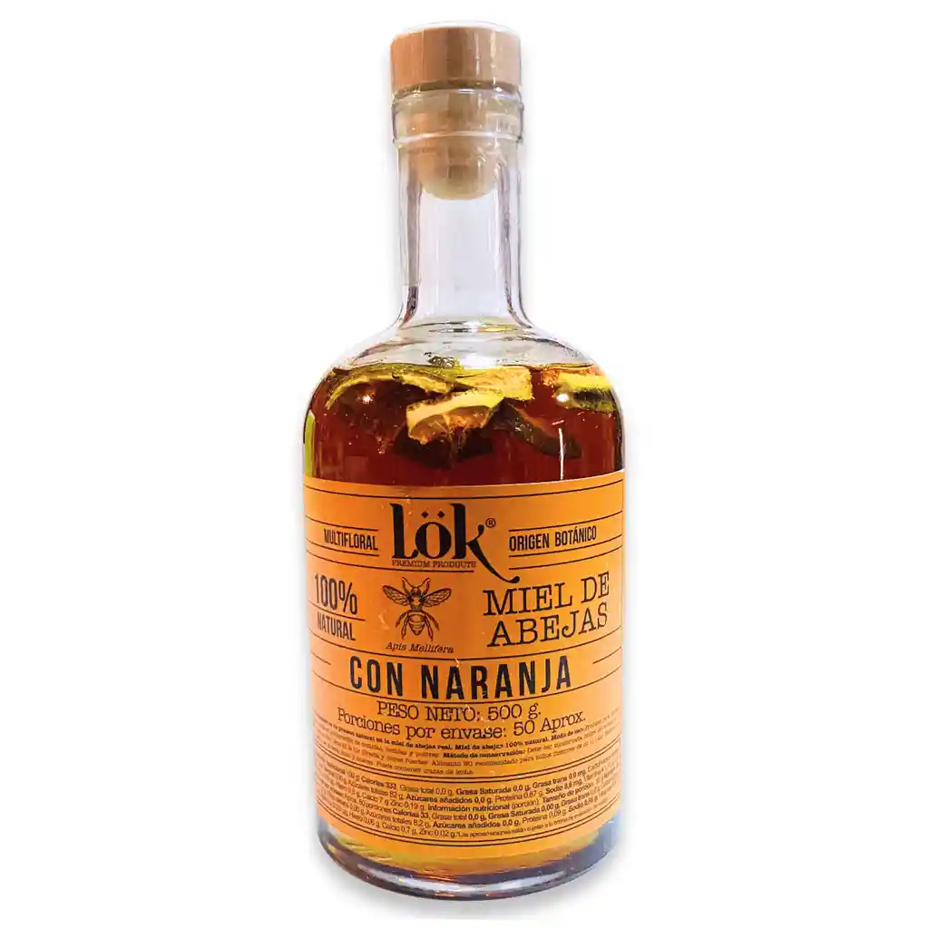 Miel Lök con naranja 500 g 100% natural. Mezcla dulce y cítrica, ideal para endulzar y disfrutar con beneficios naturales.
