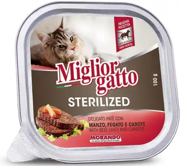 Asegura la energía y vitalidad de tu amigo para que pueda correr, saltar y jugar todo el día, es un alimento especial elaborado para gatos esterilizados, este paté contiene res, hígado y zanahoria, las vitaminas y proteínas que el necesita. packing: Caja
