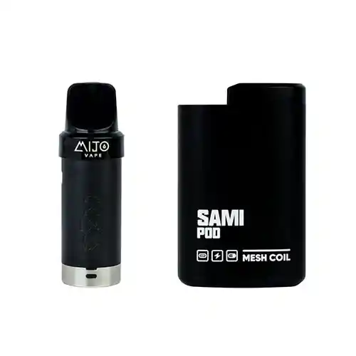 El Nuevo Sami Pod Kit. Es un pod cerrado de 3.500 puff y 8ml, ideal para vapear todo el día, ya que cuenta con una gran batería de 650mha, Adicional trae regulador de Aire en la parte de abajo, con el fin de que ajusten el tipo de calda que deseen.