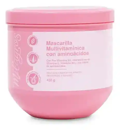 La Mascarilla capilar multivitamínica Milagros es un verdadero coctel para tu cabello. Es la solución ideal para cabellos alisados, decolorados y dañados, ya que no solo detiene la caída, sino que también fortalece la fibra capilar. Enriquecida con vitamina B5 y microesferas de vitamina E, esta mascarilla ofrece una nutrición profunda y revitalizante para un cabello más saludable y vibrante