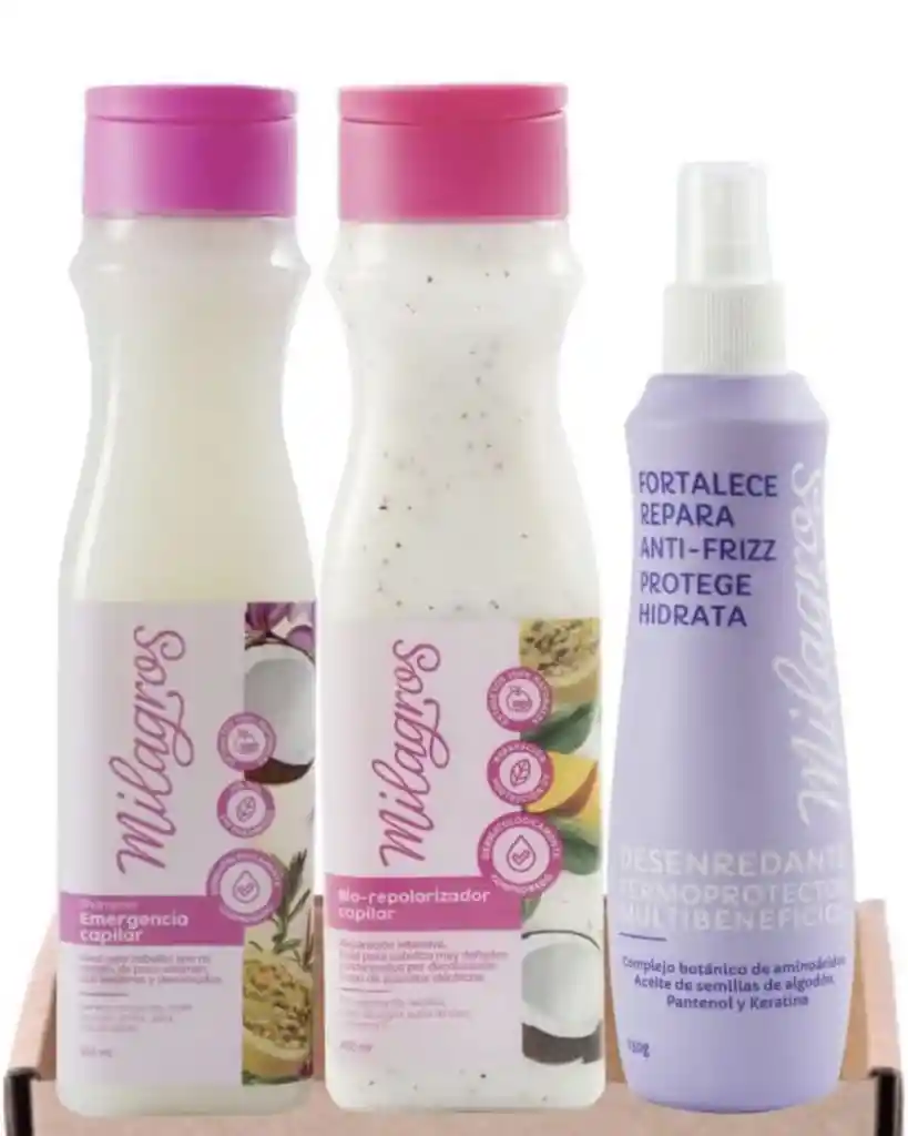 Incluye: Shampoo Emergencia Capilar Biorepolarizador Termoprotector Antifrizz