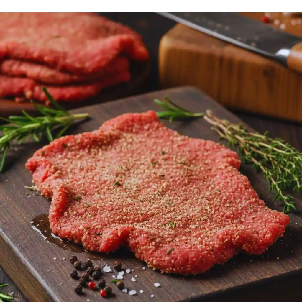 Nuestra Milanesa de Res proviene de piezas magras de la pierna (como la Bola de Lomo, Cuadrada o Nalga), seleccionadas por su ausencia de nervios y su textura uniforme. Es el corte funcional por excelencia: porcionado con precisión milimétrica para asegurar una cocción rápida y una absorción mínima de aceite en el apanado.