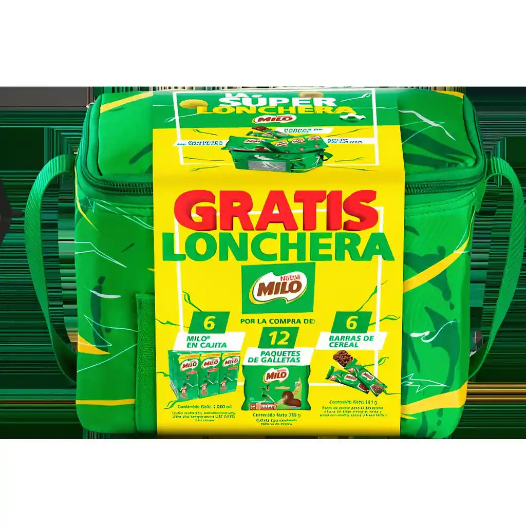 Lonchera con alimento liquido, barras y bebidas de Milo para una mejor nutrición día a día.